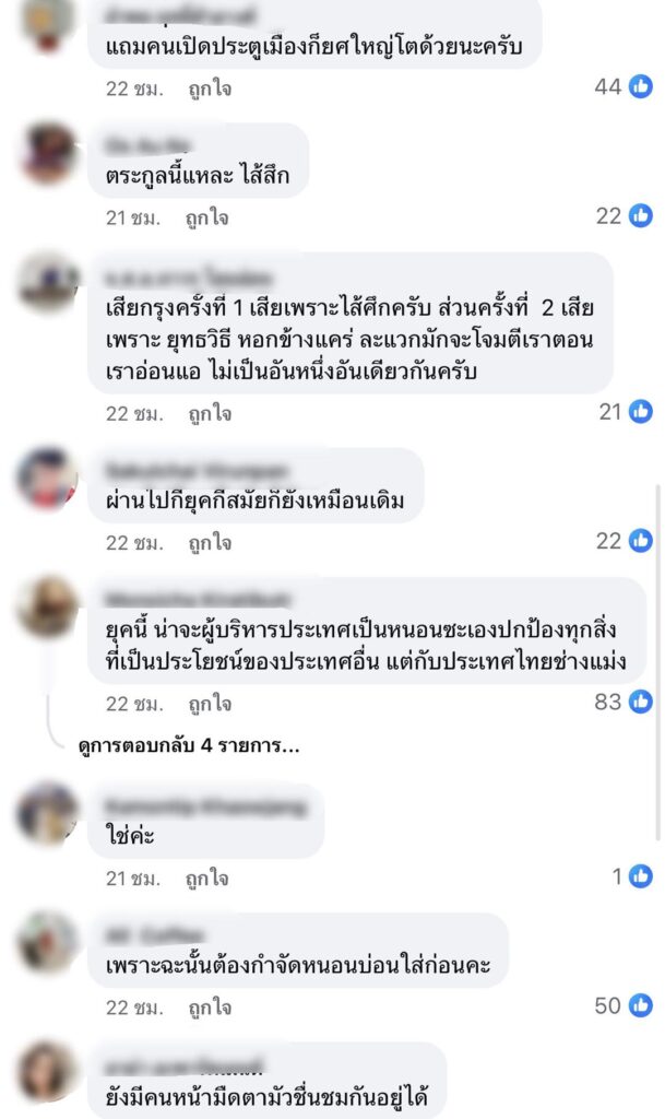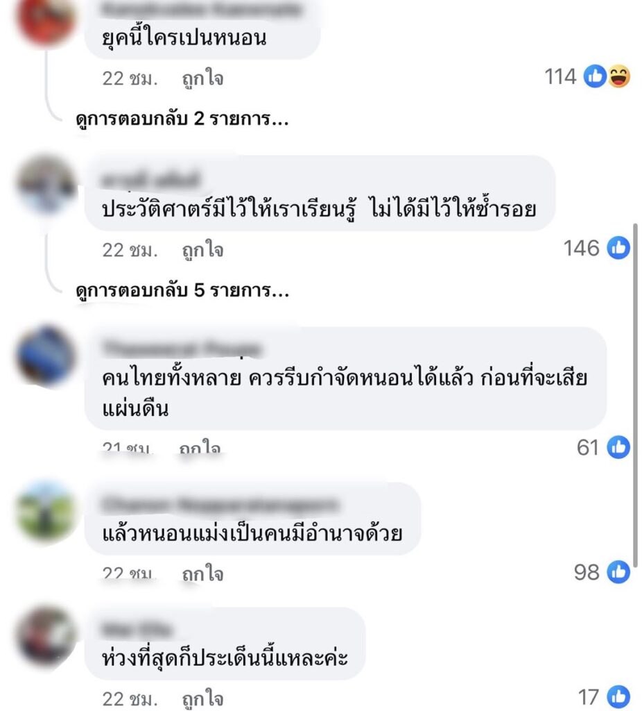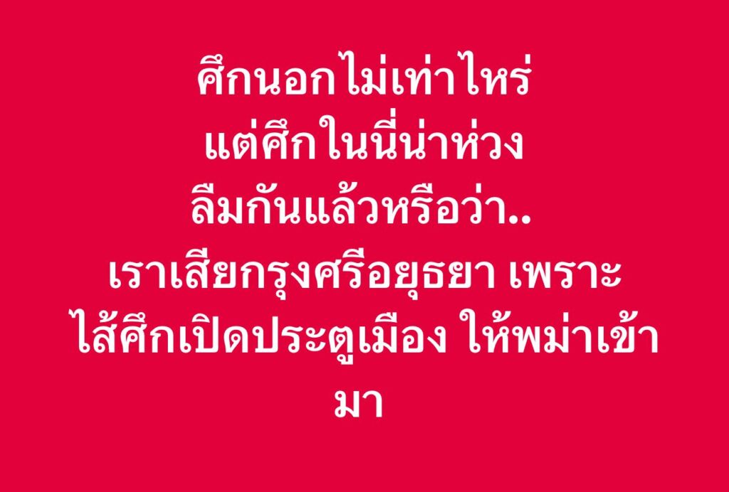 ล่าสุดทางด้านนักร้องหนุ่ม “โดม ปกรณ์ ลัม ” ได้ออกมาโพสต์ข้อความว่า “ศึกนอกไม่เท่าไหร่ แต่ศึกในนี่น่าห่วงลืมกันแล้วหรือว่า… เราเสียกรุงศรีอยุธยา เพราะไส้ศึกเปิดประตูเมือง ให้พม่าเข้ามา” ท่ามกลางชาวเน็ต ก็เข้ามาคอมเม้นต์ อย่างดุเดือดอาทิ “ยุคนี้ใครเปนหนอน, ประวัติศาตร์มีไว้ให้เราเรียนรู้ ไม่ได้มีไว้ให้ซ้ำรอย , แล้วหนอนแม่งเป็นคนมีอำนาจด้วย, ห่วงที่สุดก็ประเด็นนี้แหละค่ะ, แถมคนเปิดประตูเมืองก็ยศใหญ่โตด้วยนะครับ, ผ่านไปกี่ยุคกี่สมัยก็ยังเหมือนเดิม” และอีกมากมายเลยทีเดียว