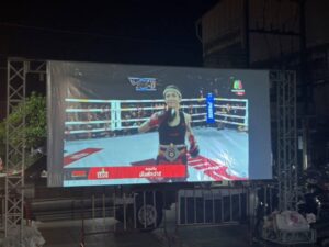 โดยตั้งแต่ช่วงเย็นได้มีการตั้งจอยักษ์ เพื่อรับชมการถ่ายทอดสดการแข่งขัน ณ ตลาดโต้รุ่งแม่ขรี ตำบลแม่ขรี อำเภอตะโหมด จังหวัดพัทลุง สร้างความคึกคักทั่วชุมชนและบริเวณใกล้เคียง มีผู้คนให้ความสนใจมาร่วมชมร่วมเชียร์เป็นจำนวนมาก ซึ่งได้รับการสนับสนุนจากเทศบาลตำบลแม่ขรี เพื่อส่งเสริมการกีฬาและสร้างแรงบันดาลใจให้เยาวชนท้องถิ่น