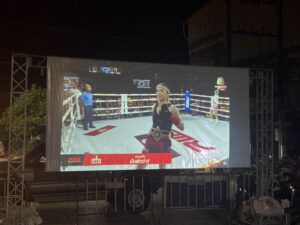 โดยตั้งแต่ช่วงเย็นได้มีการตั้งจอยักษ์ เพื่อรับชมการถ่ายทอดสดการแข่งขัน ณ ตลาดโต้รุ่งแม่ขรี ตำบลแม่ขรี อำเภอตะโหมด จังหวัดพัทลุง สร้างความคึกคักทั่วชุมชนและบริเวณใกล้เคียง มีผู้คนให้ความสนใจมาร่วมชมร่วมเชียร์เป็นจำนวนมาก ซึ่งได้รับการสนับสนุนจากเทศบาลตำบลแม่ขรี เพื่อส่งเสริมการกีฬาและสร้างแรงบันดาลใจให้เยาวชนท้องถิ่น