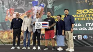 เมื่อวันที่ 26 มิ.ย.68 (ตามเวลาท้องถิ่น) ณ AGSM Forum สนามกีฬาในเมืองเวโรนา ประเทศอิตาลี นายสรวงศ์ เทียนทอง รัฐมนตรีว่าการกระทรวงท่องเที่ยวและกีฬา พร้อมด้วย นายพิมล ศรีวิกรม์ ประธานคณะกรรมการโอลิมปิกแห่งประเทศไทย และ ประธานอนุกรรมการขับเคลื่อนอุตสาหกรรมด้านกีฬา , นางโปรดปราน สมานมิตร รองผู้ว่าการฝ่ายกีฬาอาชีพและกีฬามวย การกีฬาแห่งประเทศไทย (กกท.) เดินทางที่ ให้กำลังใจนักมวยเยาวชนไทย “WBC มวยไทย ไทยแลนด์” ชุดสู้ศึก “อะเมซิ่งมวยไทยเวิลด์เฟสติวัล 2025” (Amazing Muaythai World Festival 2025) เพื่อฉลองความสัมพันธ์ไทย – อิตาลี 157 โดยมี พล.ต.ธนพล ภักดีภูมิ ประธานสภามวยโลก มวยไทย (WBC มวยไทย) ให้การต้อนรับ