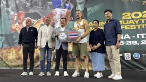 เมื่อวันที่ 26 มิ.ย.68 (ตามเวลาท้องถิ่น) ณ AGSM Forum สนามกีฬาในเมืองเวโรนา ประเทศอิตาลี นายสรวงศ์ เทียนทอง รัฐมนตรีว่าการกระทรวงท่องเที่ยวและกีฬา พร้อมด้วย นายพิมล ศรีวิกรม์ ประธานคณะกรรมการโอลิมปิกแห่งประเทศไทย และ ประธานอนุกรรมการขับเคลื่อนอุตสาหกรรมด้านกีฬา , นางโปรดปราน สมานมิตร รองผู้ว่าการฝ่ายกีฬาอาชีพและกีฬามวย การกีฬาแห่งประเทศไทย (กกท.) เดินทางที่ ให้กำลังใจนักมวยเยาวชนไทย “WBC มวยไทย ไทยแลนด์” ชุดสู้ศึก “อะเมซิ่งมวยไทยเวิลด์เฟสติวัล 2025” (Amazing Muaythai World Festival 2025) เพื่อฉลองความสัมพันธ์ไทย – อิตาลี 157 โดยมี พล.ต.ธนพล ภักดีภูมิ ประธานสภามวยโลก มวยไทย (WBC มวยไทย) ให้การต้อนรับ