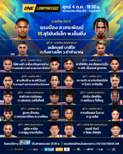 โปรแกรมการแข่งขันทุกคู่ศึก ONE ลุมพินี 115