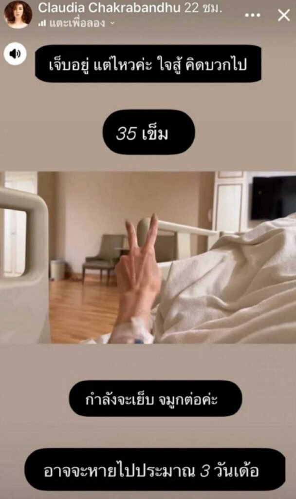 ต้องบอกเลยว่าอาการของนักแสดงสาว “คลาวเดีย จักรพันธุ์” ยังคงน่าเป็นห่วงอย่างมาก หลังจากที่เจ้าตัวเกิดอุบัติเหตุล้มหัวฟาดพื้นไปทำให้บริเวณหน้าผากมีแผลต้องเย็บไป 35 เข็ม และทำการเย็บจมูกต่อ โดยอาการในตอนนี้ดีขึ้นมากแล้วแต่ยังคงต้องรักษาต่อไป ซึ่งเจ้าตัวก็คอยมาอัปเดตอยู่เรื่อย ๆ ให้แฟนคลับหายห่วง