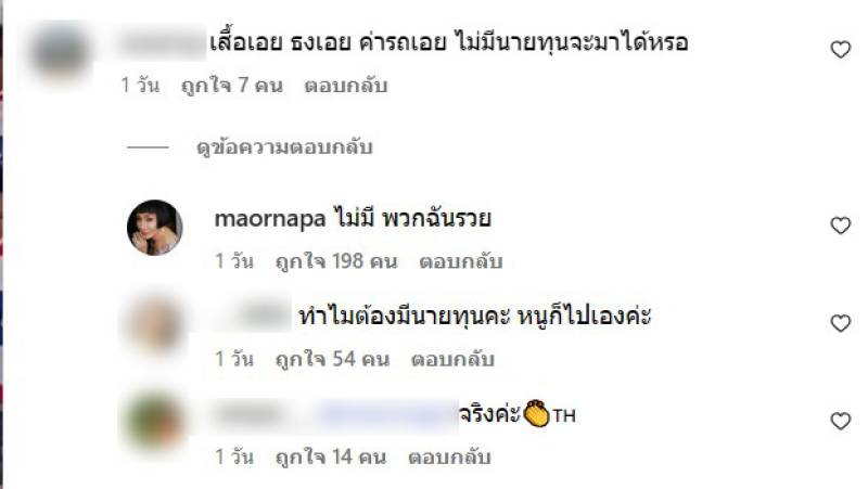 ขณะเดียวกันอดีตพิธีกร-นางแบบสาว “ม้า อรนภา” ได้โพสต์คลิปบรรยากาศม็อบดังกล่าวพร้อมระบุแคปชั่นว่า “พี่น้องสู้ๆนะ อย่าถอย ถึงฝนจะตกเดี๋ยวมันก็หยุดแล้ว 🇹🇭รักทุกคน” หลังจากที่โพสต์ถูกเผยแพรไปก็มีชาวเน็ตเข้ามาคอมเมนต์แบบไม่ขาดสายซึ่งบางคนเข้ามาคอมเมนต์ประมาณว่า “เสื้อเอย ธงเอย ค่ารถเอย ไม่มีนายทุนจะมาได้หรอ” ซึ่ง “ม้า” ก็ได้ตอบกลับอย่างเร็วว่า “ไม่มี พวกฉันรวย”