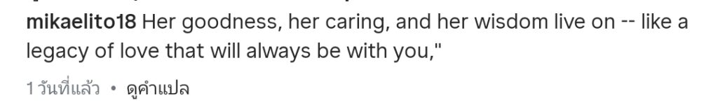 อีกทั้งยังได้ระบุข้อความไว้ว่า “Her goodness, her caring, and her wisdom live on — like a legacy of love that will always be with you”
