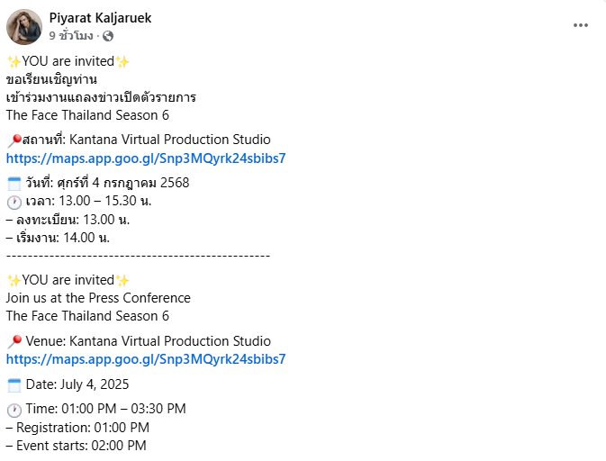 ซึ่งล่าสุด “เต้ กันตนา” ได้เฉลยเมนเทอร์คนสุดท้ายของ The Face ss6 ด้วยการเปลี่ยนรูปภาพหน้าปกในเฟซบุ๊กเป้นรูปเมนเทอร์ทั้ง 3 คน ซึ่งมี “แพนเค้ก เขมนิจ” อยู่ในนั้นด้วย ทำเอาแฟนรายการดีใจกันยกใหญ่หลังจากที่รอคอยมาอย่างยาวนาน โดยช่วงบ่ายวันนี้มีงานแถลงข่าวเปิดตัวรายการ The Face Thailand Season 6 และ “เต้” กับเมนเทอร์ทั้ง 3 คนจะให้สัมภาษณ์พร้อมกันครั้งแรกที่ Kantana Virtual Production Studio