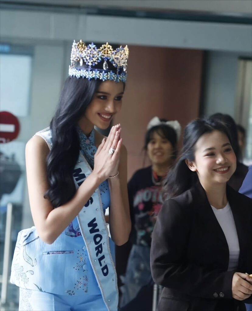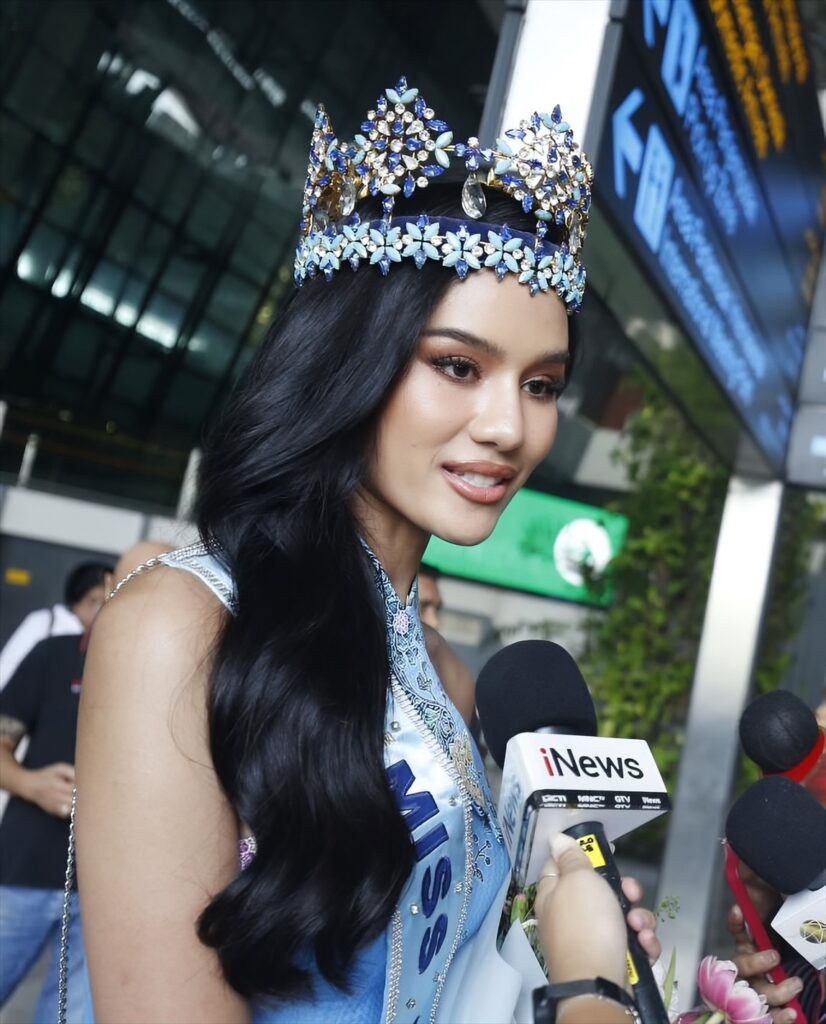 เดินทางถึงประเทศอินโดนีเซียเป็นที่เรียบร้อย เมื่อบ่ายวันที่ 7 กรกฏาคม 2568 เพื่อเข้าร่วมการประกวดมิสอินโดนีเซีย 2025 รอบตัดสิน ซึ่งจะมีขึ้นในคืนวันพุธที่ 9 กรกฎาคม 2025 รวมถึงงานแถลงข่าวอย่างเป็นทางการเพื่อต้อนรับ Miss World คนล่าสุด ในวันพรุ่งนี้ (8 กรฎาคม 2568)