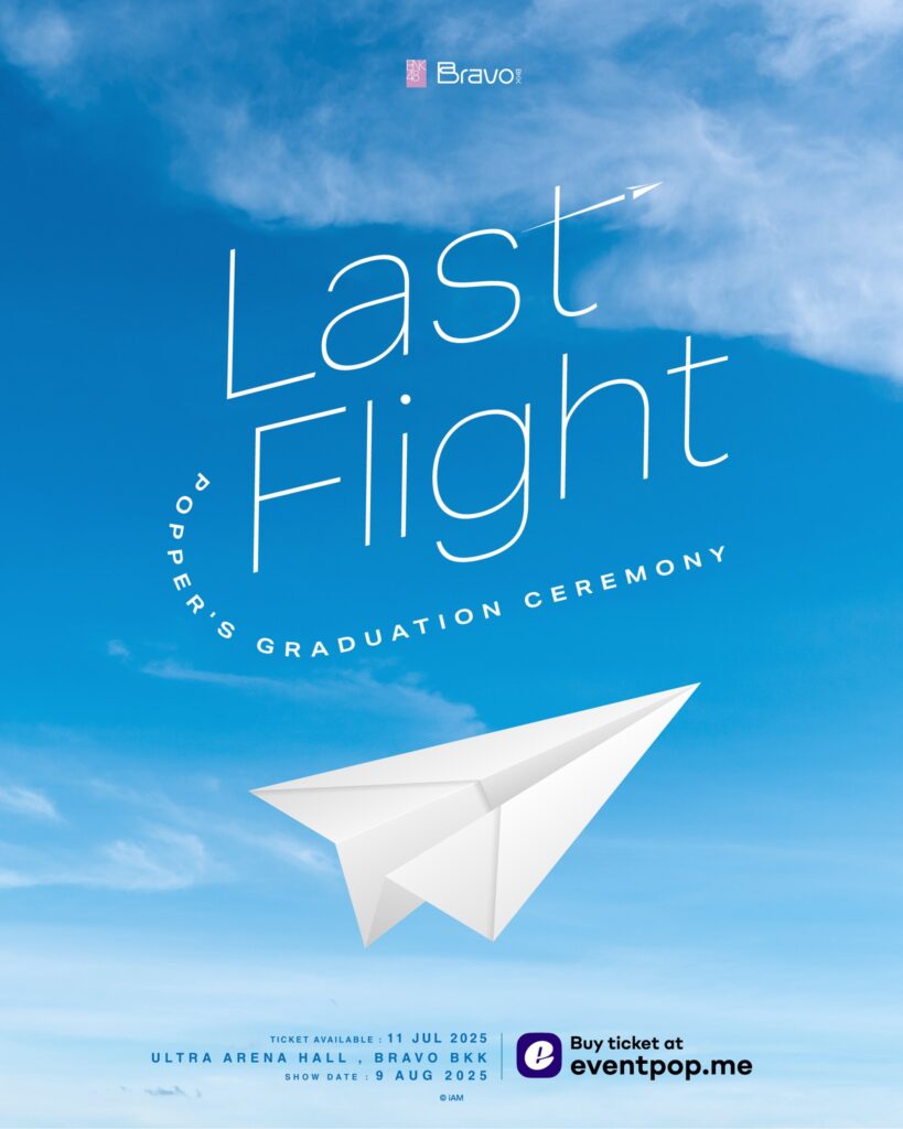 “ป๊อปเป้อ” ชิไฮนิน (ผู้จัดการวง) “คอนเซ็ปต์งานมาจากที่ป๊อปเป้อเคยได้รับตำแหน่งเซ็นเตอร์เพลง 365 วันกับเครื่องบินกระดาษในเวอร์ชั่น 2024 ก็เลยจะชอบเอากิมมิคเครื่องบินกระดาษมาใช้ และคำว่า ‘Last Flight’ ใช้ครั้งแรกในโปสเตอร์งานเลือกตั้งครั้งที่ 5 แต่ในโปสเตอร์เป็นคำว่า ’One last fight, One last flight’ ค่ะ ก็เลยหยิบคำนี้มาใช้ในงานนี้ เพราะเหมือนเราได้มีการต่อสู้ครั้งสุดท้ายร่วมกับแฟนคลับไปในงานเลือกตั้งแล้ว ดังนั้นงาน Ceremony นี้ก็เหมือนเป็นการโบยบินครั้งสุดท้ายในฐานะไอดอลของเครื่องบินกระดาษลำนี้ค่ะ เซ็ตลิสต์เพลงจัดเต็มมากบนเวทีจะเต็มไปด้วยความทรงจำตลอด 5 ปีที่ ป๊อปเป้อ เป็นไอดอล จะได้ทำสิ่งที่เคยทำเป็นครั้งสุดท้าย และได้ลองทำอะไรที่ไม่เคยทำเป็นครั้งแรกและครั้งเดียว ที่สำคัญก็คือเราเป็นคนมีหลายบทบาทใช่มั้ยคะ บอกเลยว่าวันนั้นจะได้เห็น ป๊อปเป้อ ครบทุกบทบาท และจะได้เจอคนที่ทุกคนนึกถึงครบทุกคนบนเวทีนี้แน่นอนค่ะ ฝากงาน ‘Last Flight’ Popper’s Graduation Ceremony ด้วยนะคะ มารวมบันทึกความทรงจำของการโบยบินครั้งสุดท้ายนี้ไปด้วยกันค่ะ”