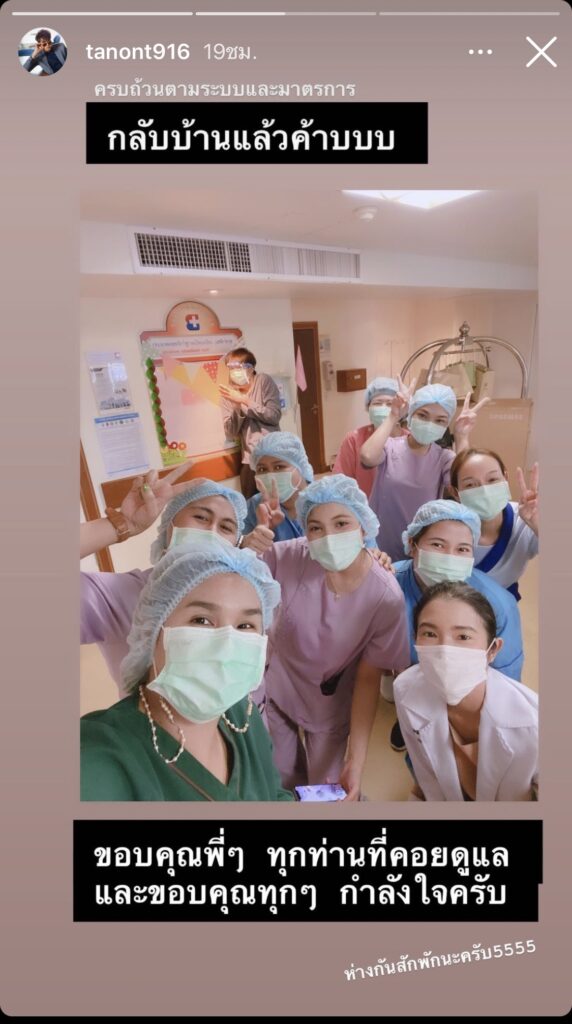 นักร้องหนุ่มอารมณ์ดี นนท์ – ธนนท์ โพสต์ไอจีสตอรี่ประกาศข่าวดี ได้กลับบ้านแล้ว โดยได้ระบุว่า “ครบถ้วนตามระบบและมาตรการ กลับบ้านแล้วค้าบบบ ขอบคุณพี่ๆทุกท่านที่คอยดูแลและขอบคุณทุกๆกำลังใจครับ”