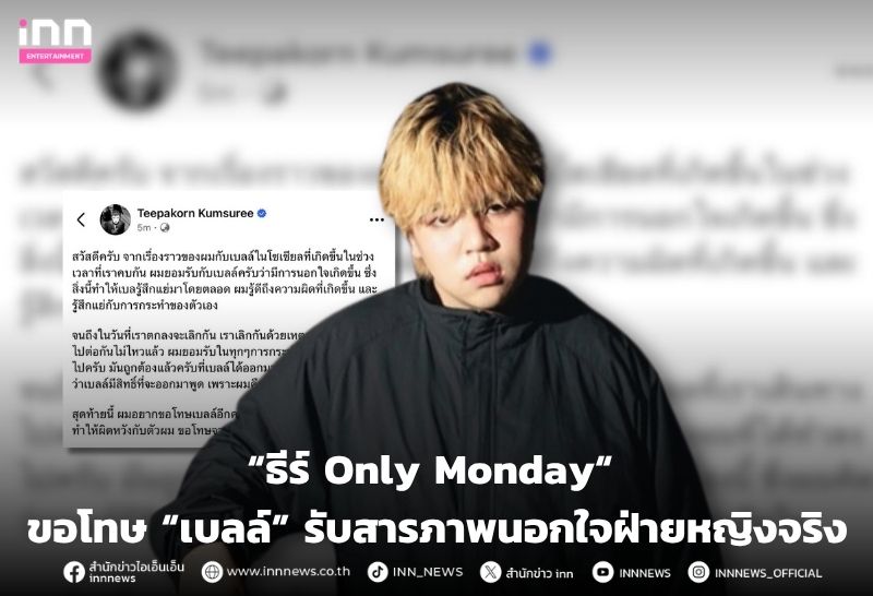 เลิกกันแล้ว! ”ธีร์ Only Monday“ ขอโทษ “เบลล์” รับสารภาพนอกใจฝ่ายหญิงจริง ลั่นถูกต้องแล้วที่ฝ่ายหญิงออกมาพูด
