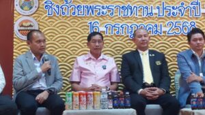 พันเอกพัศพงศ์ ศิระจารุโรจน์ ผู้อำนวยการฝ่ายรายการสถานีวิทยุโทรทัศน์กองทัพบกสถานีวิทยุโทรทัศน์กองทัพบก เป็นประธานแถลงข่าวการแข่งขันเรือยาวประเพณีชิงถ้วยพระราชทาน ประจำปี2568 ศึก “เรือยาวไทย มรดกไทย” เมื่อวันที่ 16 ก.ค. ที่ผ่านมา ที่สโมสรทหารบก(วิภาวดี) ห้องอาร์มทอง ชั้น2 โดยมีตัวแทนเจ้าภาพจัดการแข่งขันทั้ง 7 สนามร่วมให้รายละเอียด