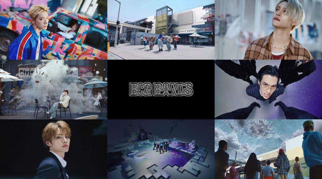 ในมินิอัลบั้มชุดที่ 7 ‘BIG BANDS’ (บิ๊ก แบนด์) ทุกคนจะได้สัมผัสกับสีสันทางดนตรีที่หลากหลายมากขึ้นของ WayV (เวย์วี) ผ่าน 6 เพลงใหม่ เริ่มจากเพลงไตเติลที่มีทั้งเวอร์ชันภาษาเกาหลีและจีนอย่าง ‘BIG BANDS’ (บิ๊ก แบนด์) เพลงแดนซ์อัปบีตที่ชวนให้นึกถึงดนตรีบิ๊กแบนด์อันยิ่งใหญ่ พร้อมเพิ่มองค์ประกอบแจ๊สเข้ากับเสียงเครื่องเป่าทองเหลืองและจังหวะที่ไพเราะ เนื้อเพลงพูดถึง “การสร้างเสียงสะท้อนอันยิ่งใหญ่แบบบิ๊กแบนด์ และปลุกจิตวิญญาณของทุกคน” ด้านมิวสิกวิดีโอมีภาพที่ WayV (เวย์วี) กำลังสนุกสนานกับกระบวนการ ‘Redesign (ออกแบบใหม่)’ และเปลี่ยนแปลงโลกให้เข้ากับคาแรกเตอร์ของแต่ละสมาชิกด้วยการใช้เอฟเฟกต์ต่าง ๆ