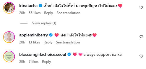 งานนี้แม้จะไม่ทราบแน่ชัดว่าเกิดอะไรขึ้น แต่เพื่อน ๆ และแฟนคลับต่างก็เข้ามาคอมเมนต์ให้กำลังกันอย่างมากมาย