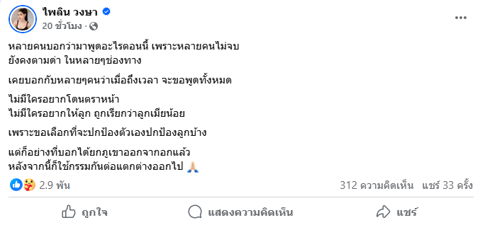 เรียกว่าเป็นประเด็นร้อนแรงในโลกโซเชียล จากกรณีที่อดีตมิสแกรนด์ระนองอย่าง “แบม ไพลิน” ได้ออกมาโพสต์ร่ายยาวถึงประเด็นสามีนักธุรกิจหนุ่ม “แม็กซ์ ณพวิทย์” ที่เลิกรากันไป โดย “แบม” ได้เผยเรื่องราวความรักครั้งนี้จนหมดเปลือก ตั้งแต่วันที่เริ่มคบกันจนถึงวันที่ตัดสินใจแยกทางกัน ยอมเดินออกมาเพราะจับได้ว่าสามีนั้นนอกใจ เจอรอยดูดที่คอและคราบที่กางเกง และหลังจากเลิกรากันไปทางฝั่งสามีก็ยังคงมาระรานไม่จบจนต้องให้เรื่องทั้งหมดไปจบที่ศาล พร้อมกับยืนยันว่าจากเรื่องราวทั้งหมดที่เกิดขึ้นนั้นตนไม่ใช่เมียน้อย ทำเอาชาวเน็ตได้เข้ามาคอมเมนต์วิพากษ์วิจารณ์จำนวนมาก และต่างตั้งคำถามว่าทำไมถึงได้มาโพสต์ในตอนนี้