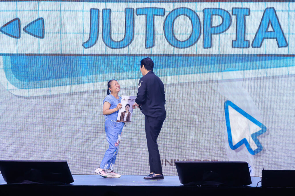 เจ้าตัวถึงกับยิ้มน้อยยิ้มใหญ่แล้วเสิร์ฟเซอร์ไพรส์แรกต่อทันที ด้วยการแจกภาพโพลารอยด์ที่ถ่ายเองบนเวทีพร้อมลีลาเซลฟี่แบบไม่ห่วงหล่อให้กับแฟนคลับผู้โชคดี งานนี้แฟน ๆ ยิ่งหลงความขี้เล่นจนใจละลาย กรี๊ดกันไม่มีหยุด ไม่มีคำว่าเหนื่อย! ความสนุกยังต่อเนื่องแบบยิงยาวกับช่วง JUNIVERSE AWARD ที่เปิดให้แฟน ๆ ร่วมโหวตเรื่องราวเกี่ยวกับจูจีฮุน พาร์ทนี้ทั้งสนุกทั้งเรียกเสียงหัวเราะได้แบบสุด ๆ ต่อด้วยช่วงตอบคำถามที่แฟนคลับในงานเขียนถึงจูจีฮุน บอกเลยว่าแต่ละคำถาม แต่ละคำขอ คอมพลีทกันแบบจัดเต็ม โอปป้าคนดีไม่ทำให้ผิดหวัง ขออะไรก็ให้หมด แจกไม่กั๊กเลยทีเดียว