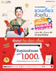 ศูนย์การค้าโรบินสันไลฟ์สไตล์ ในเครือเซ็นทรัล รีเทล ตอกย้ำบทบาทศูนย์กลางการใช้ชีวิตที่สมบูรณ์แบบ ครอบคลุมที่สุดทั่วไทย ด้วยกลยุทธ์ “Lifestyle and Experiential Community” เดินหน้าเปิดแคมเปญ “ชวนเที่ยวด้วยกัน” ระหว่างวันที่ 1 ส.ค. 68 – 31 ต.ค. 68 ที่โรบินสันไลฟ์สไตล์ 27 สาขาทั่วประเทศ ขานรับโครงการเที่ยวไทยคนละครึ่ง โดยมุ่งหมายส่งเสริมเศรษฐกิจทุกภูมิภาคทั่วไทย ผ่านศูนย์การค้าฯ ที่เป็นทั้งศูนย์กลางไลฟ์สไตล์และ Tourist Destination ในแต่ละภูมิภาค พร้อมจับมือกับพันธมิตรร้านค้ากว่า 300 ร้านค้า ครอบคลุมหมวด กิน-ช้อป-เที่ยว มอบคูปองส่วนลดรวมมูลค่า 1,000 บาท เมื่อช้อปภายในศูนย์การค้าฯ ครบ 500 บาทขึ้นไป ร่วมเป็นพลังขับเคลื่อนการจับจ่ายและกระตุ้นเศรษฐกิจให้เติบโตอย่างแข็งแรงในทุกภูมิภาคทั่วไทย