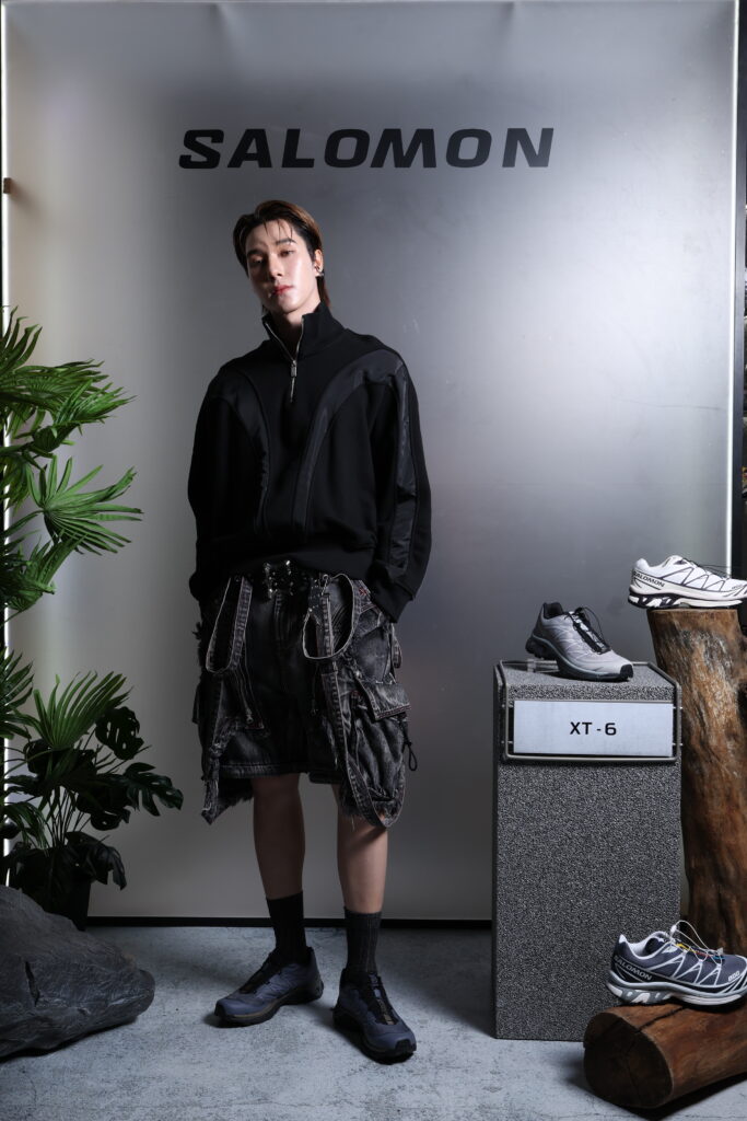 สำหรับโจริญ คัมภีรพันธุ์ จากวง 4EVE มาพร้อมลุคเดรสสีดำสุดเฟียส พร้อมรองเท้าดีไซน์สปอร์ตโอบรับแฟชั่นรุ่น XT-6 สี Grisaille / Blue Nights / Quarry ตอกย้ำการเป็นผู้นำสไตล์ T-POP ได้เป็นอย่างดี โดย SALOMON XT-6 นอกจากฟังก์ชันของเทคโนโลยีที่โดดเด่นจนเป็นเอกลักษณ์อย่าง QUICKLACETM ใส่ง่าย ถอดคล่องทุกการใช้งาน, sensiFITTM system ระบบช่วยโอบรับเท้าตั้งแต่พื้นรองเท้าชั้นกลางไปจนถึงระบบเชือกผูก มอบความกระชับ มั่นคง และปรับให้พอดีกับเท้าได้ และพื้น contaGRIP ที่พร้อมลุยทุกสภาพผิว จากยอดเขาสู่ท้องถนนที่เต็มไปด้วยชีวิตชีวาในโลกแห่งแฟชั่นภายใต้ไลน์ Sportstyle การออกแบบที่โดดเด่นจากฝีมือของ Benjamin Grenet ที่ไม่ได้มุ่งเน้นเพียงความสวยงาม แต่เพื่อ “เน้นให้เทคโนโลยีในรองเท้ามองเห็นได้ชัดเจน” ทำให้ XT-6 ก้าวข้ามจากรองเท้าเฉพาะทางสู่การเป็นแฟชั่นไอเท็มอเนกประสงค์ และกลายเป็นชิ้นสำคัญในเทรนด์ “gorpcore” ที่ผสานแฟชั่นเอาท์ดอร์เข้ากับสไตล์เมืองได้อย่างลงตัว