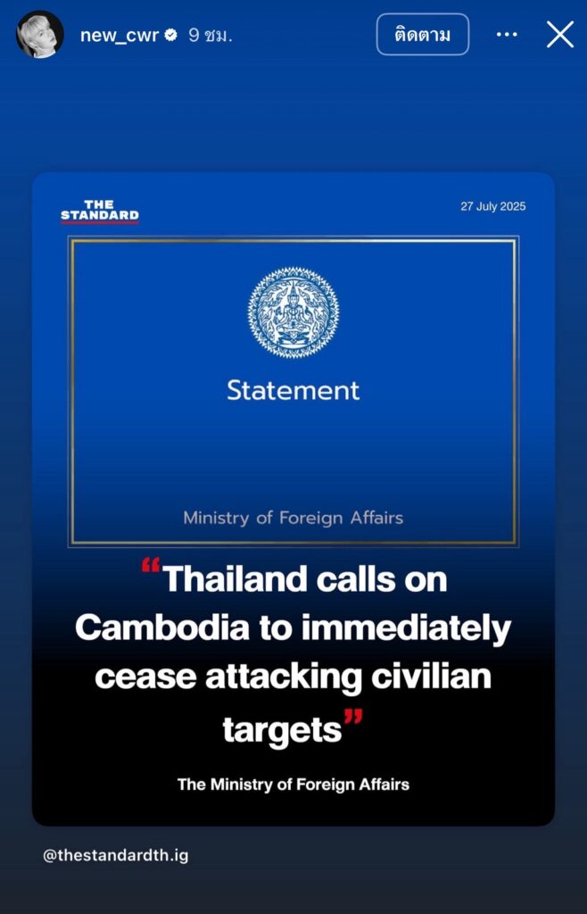 แต่ไม่ว่ายกลับถูกชาวเน็ตของทางกัมพูชาเข้ามาโจมตี ใช้ถ้อยคำหยาบคาบกับดาราไทยที่ออกมาแสดงความคิดเห็นเพื่อปกป้องประเทศไทย ทำเอาแฟนคลับต่างออกมาพร้อมใจปกป้อง