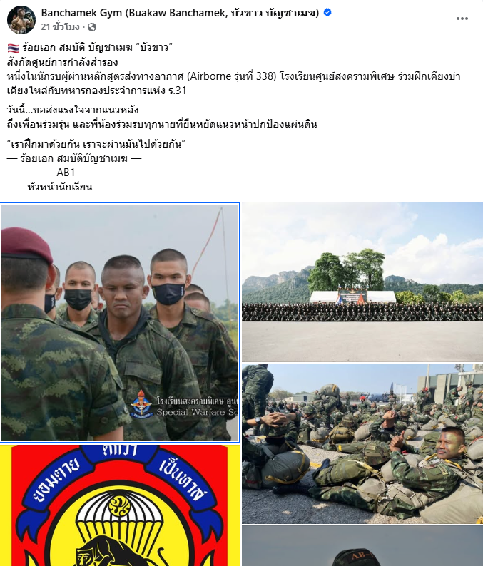 หนึ่งในนักรบผู้ผ่านหลักสูตรส่งทางอากาศ (Airborne รุ่นที่ 338) โรงเรียนศูนย์สงครามพิเศษ ร่วมฝึกเคียงบ่าเคียงไหล่กับทหารกองประจำการแห่ง ร.31