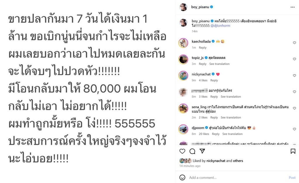 หุ้นส่วนปลาแซลมอน “บอย ภิษณุ“ โต้กลับ ลั่นมีหลักฐานแคปไว้หมด ชาวเน็ตเข้ามาคอมเมนต์สนั่น