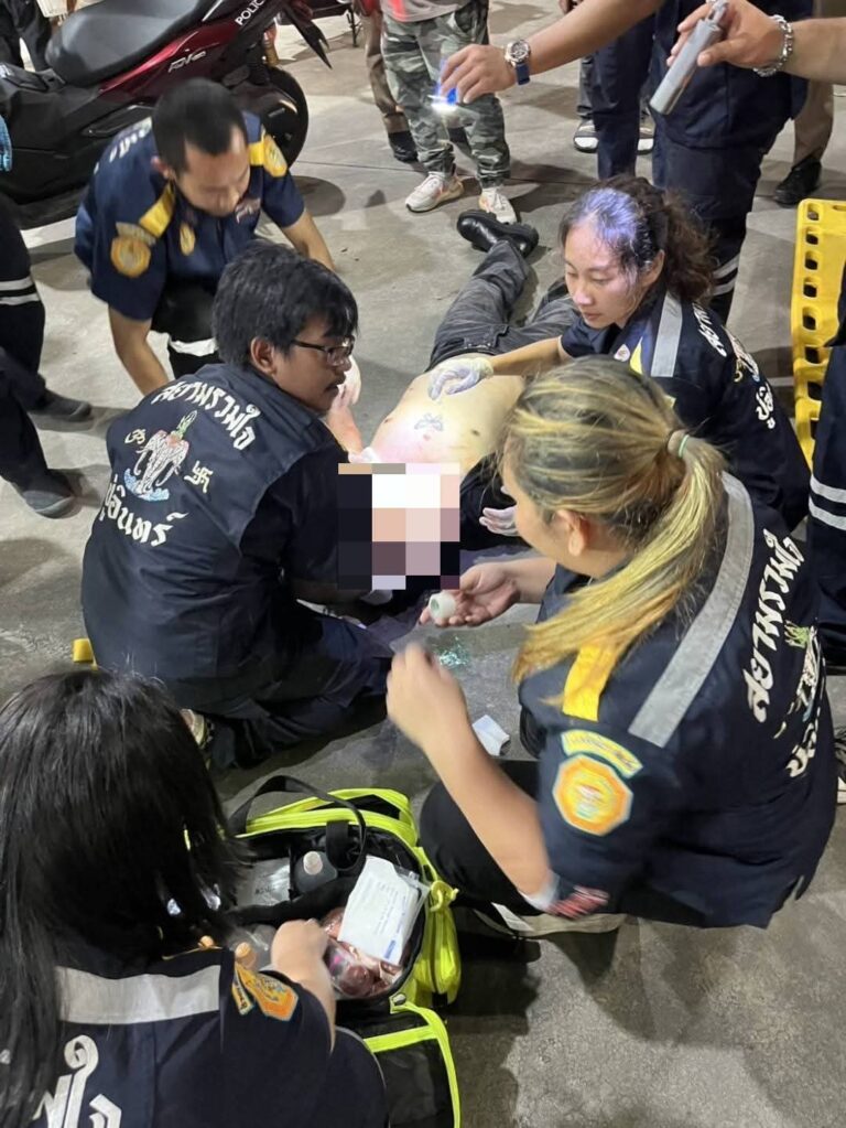 • รถของทางกู้ภัยได้มาถึงที่เกิดเหตุในเวลาต่อมา โดยเจ้าหน้าที่ได้ทำการปฐมพยาบาล “เป๊ก” และรีบนำตัวส่งโรงพยาบาลในทันที