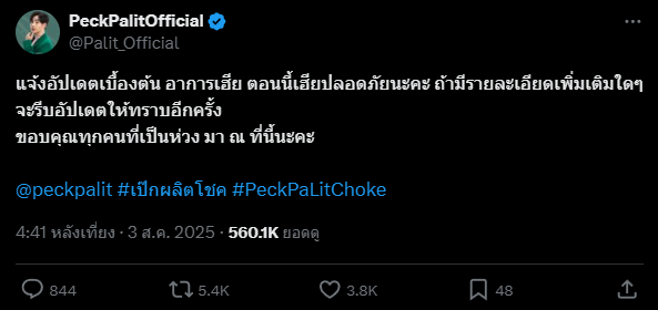 ทางแอคเคาต์ X (Twitter) PeckPalitOfficial