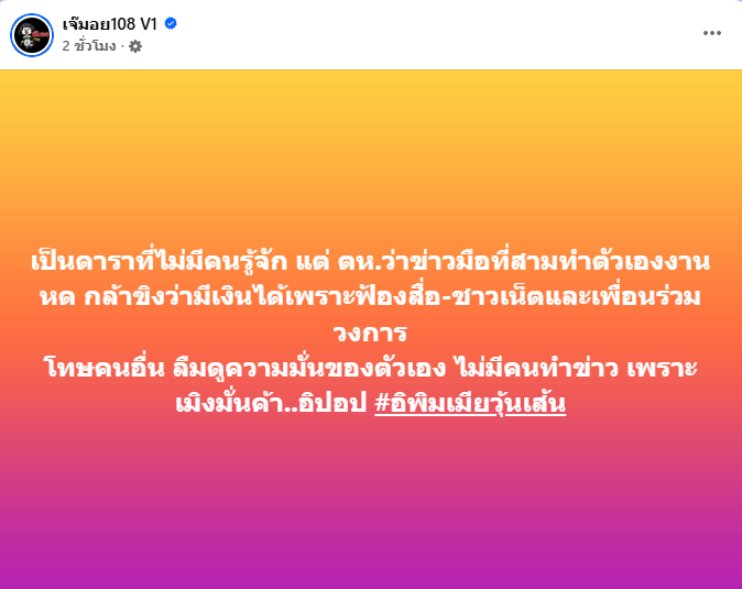 โทษคนอื่น ลืมดูความมั่นของตัวเอง ไม่มีคนทำข่าว เพราะเมิงมั่นค้า..อิปอป #อิพิมเมียวุ้นเส้น”