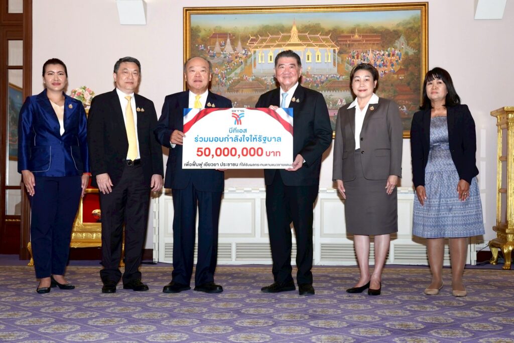 นายคีรี กาญจนพาสน์ ประธานกรรมการ บริษัท ระบบขนส่งมวลชนกรุงเทพ จำกัด (มหาชน) หรือ รถไฟฟ้าบีทีเอส นำคณะผู้บริหารของบริษัทฯ “มอบเงินสนับสนุนรัฐบาล จำนวน 50 ล้านบาท