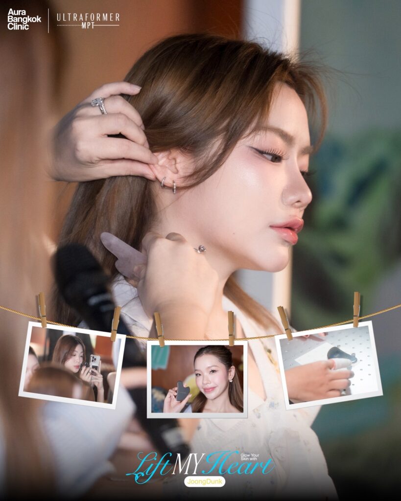 กระแสออนไลน์มาแรง หลายแบรนด์ต้องปรับตัว เสิร์ฟแคมเปญออนไลน์ให้ดังและไวรัล เพื่อจับผู้ชมที่เสพสื่อออนไลน์ให้กลายมาเป็นลูกค้า คลินิกเสริมความงามแนวหน้าอย่าง Aura Bangkok Clinic เลยขอลุยทั้งแคมเปญออนไลน์และออฟไลน์ไปพร้อม ๆ กัน โดยมีโจทย์ว่า ลูกค้าจะต้องได้สัมผัสประสบการณ์ผ่านหน้าจอและประสบการณ์ในสถานที่จริง ผ่านกิจกรรมที่หลากหลาย ทำง่ายและจดจำได้ในทุกมิติ แนวคิดนี้กลายเป็นที่มาของแคมเปญ Lift My Heart, Glow Your Skinแคมเปญเปิดตัวเครื่อง Ultraformer MPT เทคโนโลยี 2 in 1 ที่ Aura Bangkok Clinic เป็นคลินิกแรกในไทยที่นำเทรนด์ยกกระชับ & ปรับผิวใสในเครื่องเดียว พร้อมเชิญ จุง อาเชน ไอย์ดึน และ ดัง ณัฎฐ์ฐชัย บุญประเสริฐ สองหนุ่มจากค่าย GMM มาร่วมแบ่งปันเคล็ดลับหน้ายก ผิวเนียนแบบดาราด้วยเครื่อง Ultraformer MPT