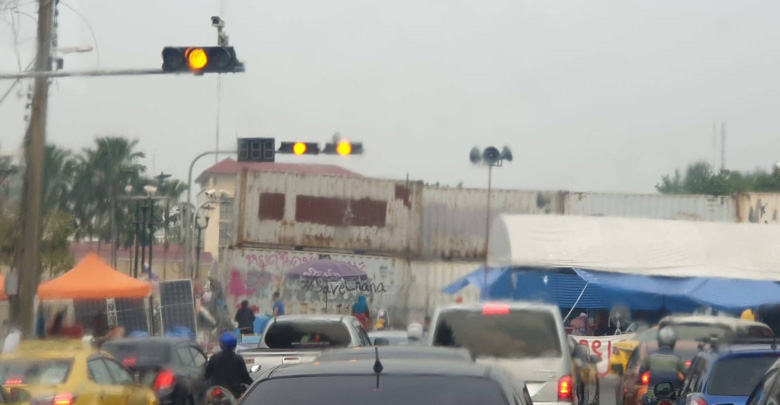 บรรยากาศแยกพาณิชการ บริเวณหน้าทำเนียบรัฐบาลกลุ่มประชาชนจะนะ จ.สงขลา รวมตัวหน้าทำเนียบรัฐบาล เพื่อคัดค้านโครงการนิคมอุตสาหกรรมจะนะเป็นวันที่ 5 แล้ว