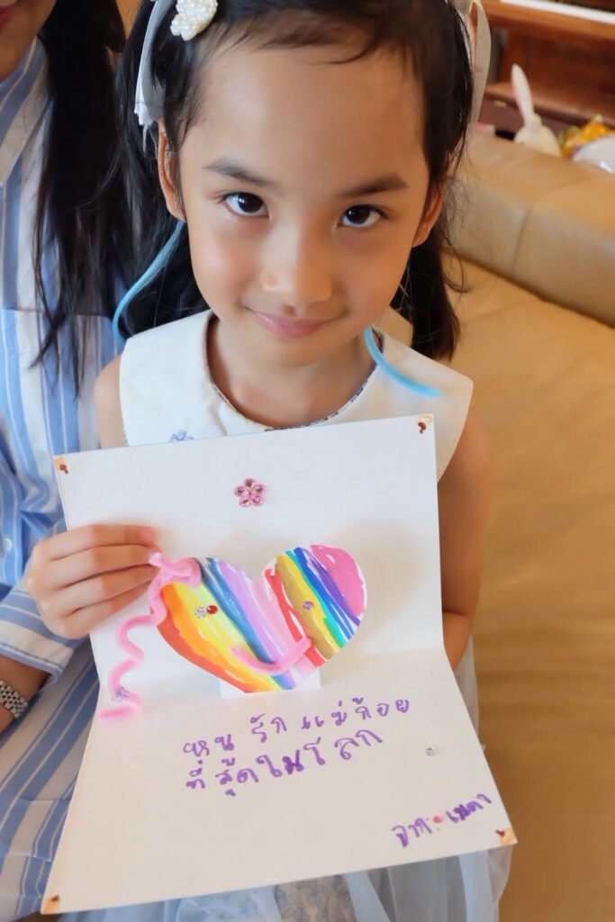 “ครูก้อย” โพสต์ภาพอบอุ่นหัวใจ “น้องเมดา” ทำการ์ดบอกรักแม่ด้วยฝีมือตัวเอง