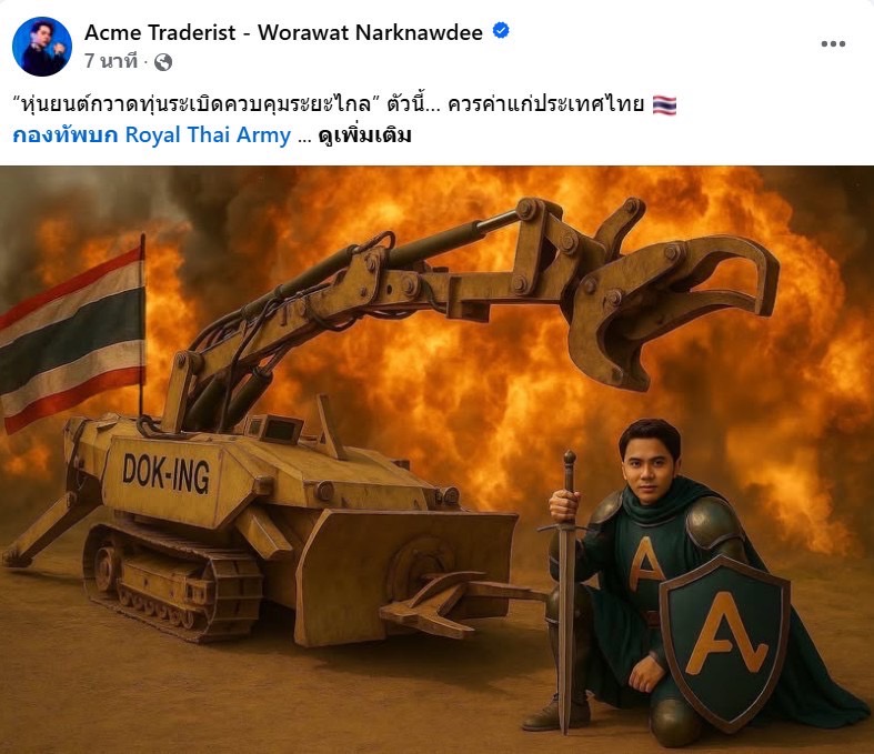 “ประเทศไทย…สมควรมีสิ่งนี้ ไม่ใช่เพื่อรบกับใคร แต่เพื่อหยุดการสูญเสีย และเพื่อยืนยันว่า ชีวิตของประชาชนไทยทุกคน มีค่ามากเกินกว่าจะปล่อยให้ถูกพรากไปเพราะกับระเบิด แม้ขั้นตอนจะยุ่งยากและซับซ้อนเพียงใด แต่ผม…และแฟนคลับชาว ACT Warriors คนธรรมดาตัวเล็กๆ อย่างพวกเรา จะพยายามอย่างถึงที่สุด เพื่อให้ได้มันมาเพื่อส่งมอบ และบริจาคให้แก่กองทัพไทย