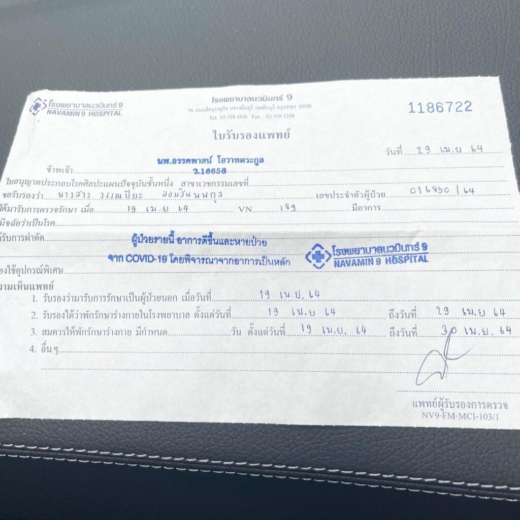โดยสาวกวาง ได้ระบุว่า ในวันนี้แพทย์ได้อนุญาตให้กลับบ้านได้ โดยระยะกักตัวที่ Hospitel ทั้งหมด 25 วัน ซึ่งไม่มีอาการอะไรเลย และผล X-Ray ปอกทั้งสอง 2 ก็ปกติ โดยทางแพทย์ยังบอกอีกว่าในเคสของตนนั้นไม่สามารถแพร่เชื้อให้ได้ใครแล้ว แต่ต้องระวังว่าอาจจะรับเชื้อเข้ามาใหม่ได้ เพราะสามารถติดเชื้อซ้ำได้ พร้อมทั้งขอบคุณทีมแพทย์ พยาบาล และเจ้าหน้าที่ทุกคนที่ดูตนเป็นอย่างดี รวมถึงกำลังใจจากทุกๆคนด้วย