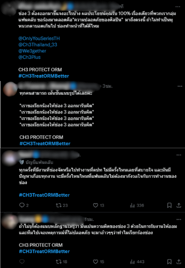 ทางด้านแฟนคลับทั้งไทยและต่างประเทศจึงไม่พอใจกับการทำงานของต้นสังกัด “ออม” อย่างช่อง 3 จึงร่วมกันเทรนด์ #CH3TreatORMBetter เพื่อให้ออกมารับผิดชอบต่อปัญหาที่เกิดขึ้น