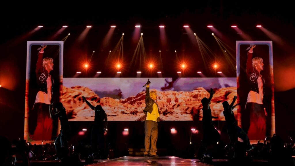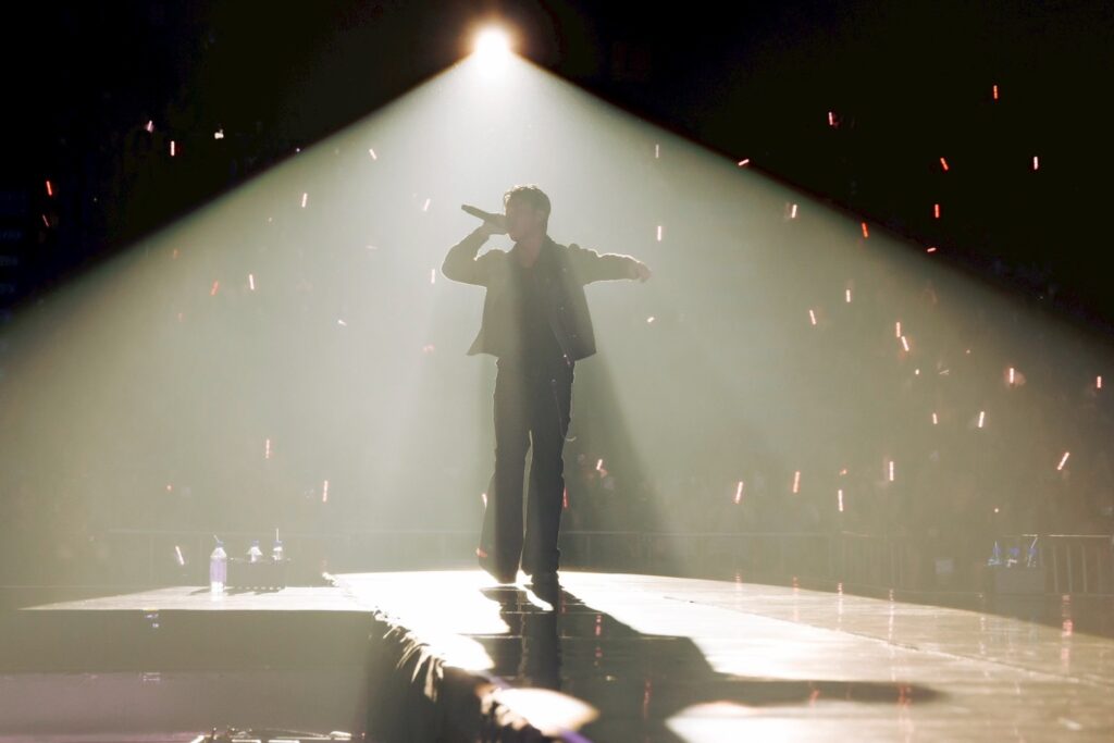 ทันทีที่ไฟดับลงฮอลล์ทั้งฮอลล์ก็สว่างไสวด้วยพลังของแฟนๆ ที่พร้อมใจกันลุกขึ้นต้อนรับด้วยการโชว์แท่งไฟ พร้อมเสียงกรี๊ดที่ผสานกับโปรดักชันอลังการบนจอยักษ์ ทำให้บรรยากาศเปิดฉากขึ้นอย่างยิ่งใหญ่กลายเป็น “พาเหรดแห่งความฝัน” ของบีไออย่างแท้จริง ก่อนที่ B.I จะปรากฎตัวพร้อมคาริสม่าที่สะกดทุกสายตา และอุ่นเครื่องด้วยเพลง “Parade” จุดชนวนพลังของทั้งศิลปินและ ID ไทยให้ระเบิดความมันอย่างพร้อมเพรียง