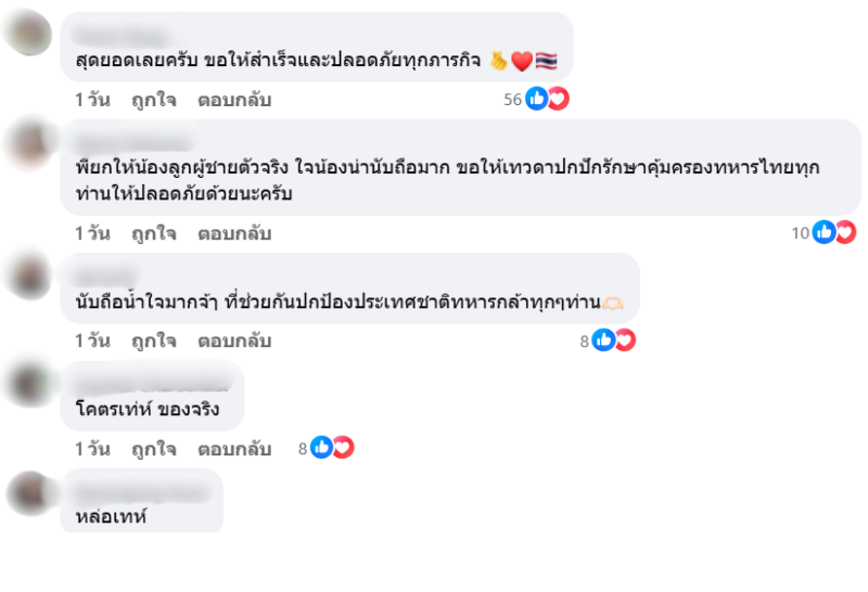 งานนี้ทางด้านแฟนคลับและชาวเน็ตได้เข้ามาแสดงความคิดเห็นชื่นชมและส่งกำลังใจให้ทหารทุกนายที่ทำหน้าที่ปกป้องประเทศชาติอย่างมากมาย