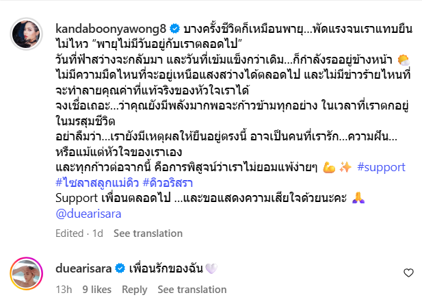 Support เพื่อนตลอดไป …และขอแสดงความเสียใจด้วยนะคะ 🙏 @duearisara”