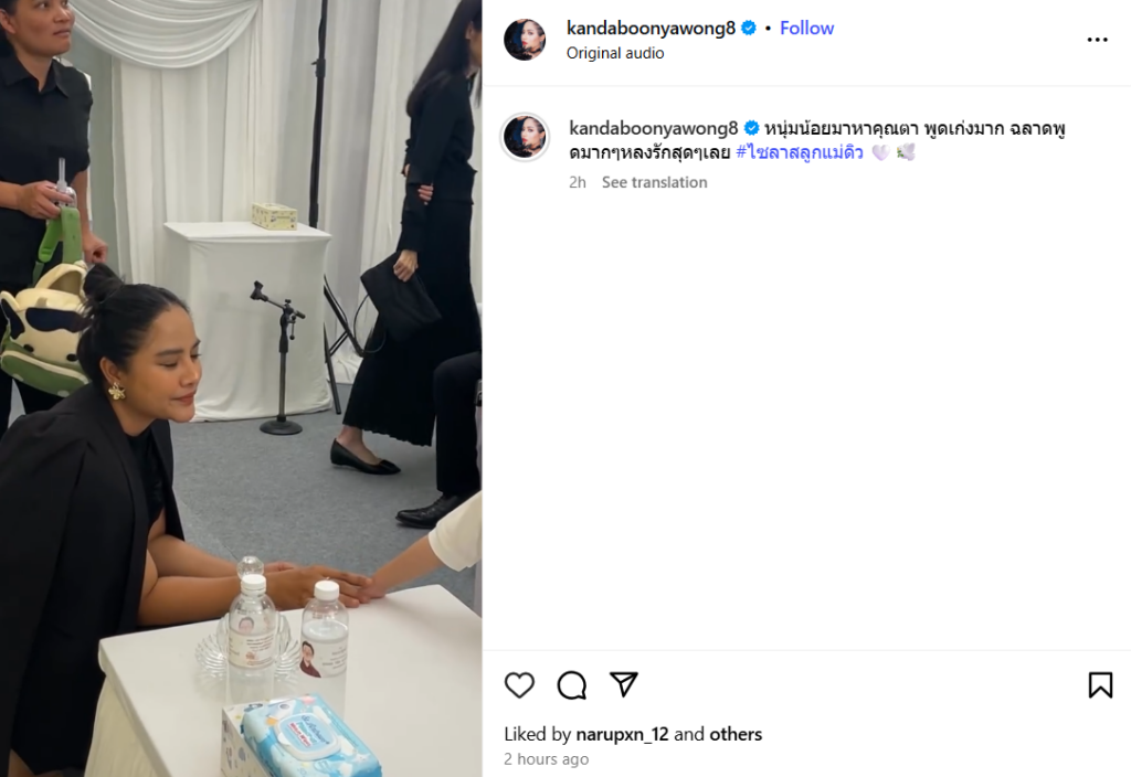 ล่าสุด “กานดา” ได้โพสต์คลิปภายในงาน พร้อมคุยหยอกเล่นกับ “น้องไซลาส” ลูกชายของ “ดิว” โดยแนบข้อความไว้ว่า “หนุ่มน้อยมาหาคุณตา พูดเก่งมาก ฉลาดพูดมากๆหลงรักสุดๆเลย #ไซลาสลูกแม่ดิว”