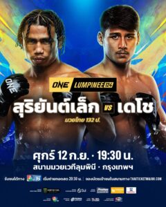 “สุริยันต์เล็ก พ.เย็นยิ่ง” มวยกำปั้นหนัก วัย 29 ปี จากมหาสารคาม ท้าวัดพลังสด “เดโช ป.บริรักษ์” นักสู้ไฟแรง วัย 22 ปี จากสงขลา ที่ชนะมา 2 ไฟต์รวด โดยจะสู้กันในกติกามวยไทย 132 ป. ขึ้นป้ายคู่เอกของศึก ONE ลุมพินี 124 ที่จะแข่งขันกันในวันศุกร์ที่ 12 ก.ย.นี้ ที่สนามมวยเวทีลุมพินี (รามอินทรา)