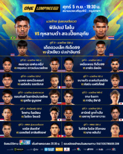 โปรแกรมการแข่งขันทุกคู่ศึก ONE ลุมพินี 123