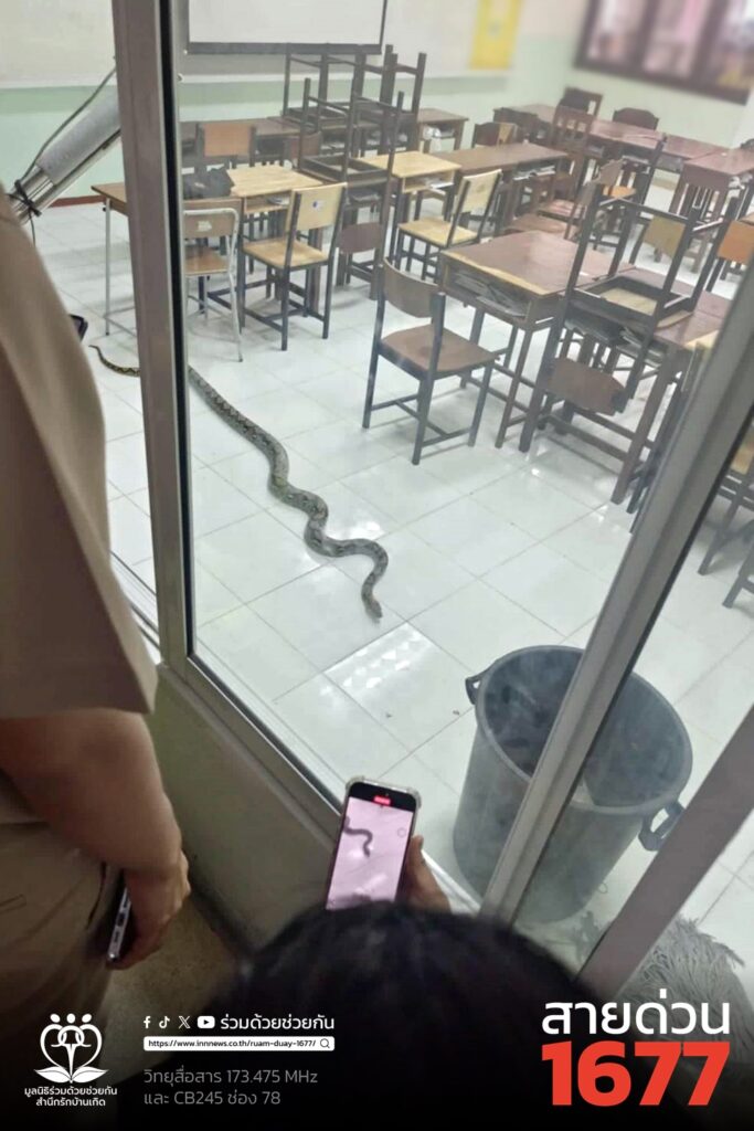 ครู-นักเรียนแตกตื่น! งูเหลือมเข้าห้องเรียน ย่านพระราม 3