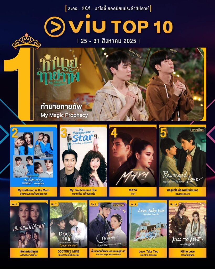 “จิมมี่-ซี” พา ทำนายทายทัพ My Magic Prophecy คว้าใจผู้ชมไปเต็ม ๆ ขึ้นแท่นอันดับ 1 ซีรีส์ยอดนิยมในแอปพลิเคชัน Viu ถึงสองสัปดาห์ติต มาแรงแซงคอนเทนต์อื่น ๆ แบบไม่เกรงใจใคร ด้วยพล็อตชวนติดตามติดตามแบบห้ามคาดสายตา