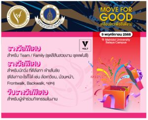 สมาคมกีฬายิมนาสติกแห่งประเทศไทย และสมาคมศิษย์เก่าวิทยาศาสตร์การกีฬา มหาวิทยาลัยมหิดล ขอเชิญชวนทุกท่านเข้าร่วมกิจกรรม เดิน-วิ่งการกุศล “Move For Good เคลื่อนไหวเพื่อสิ่งดีงาม” งานวิ่งที่ไม่ได้มีเพียงแค่สุขภาพร่างกายที่แข็งแรง แต่ยังเต็มไปด้วยพลังของการขับเคลื่อน และการให้