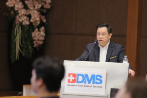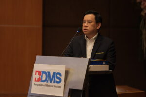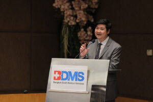นายแพทย์ ภคภณ อิสรไกรศีล ศัลยแพทย์ออร์โธปิดิกส์ด้านเวชศาสตร์กีฬา สถาบันเวชศาสตร์กีฬาและออกกำลังกาย (BASEM) โรงพยาบาลกรุงเทพ บรรยายหัวข้อ FIFA Emergency Action Plan : แนวทางการจัดการต่อสถานการณ์ฉุกเฉินในฟุตบอลตามมาตรฐาน FIFA