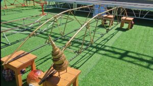 ทีมจากคณะวิศวกรรมศาสตร์ ศรีราชา ได้ส่งผลงานภายใต้แนวคิด “การลดคาร์บอนไดออกไซด์ ลดของเสีย และการนำวัสดุกลับมาใช้ใหม่” ซึ่งสอดคล้องกับนโยบาย “KU Goes Green and Carbon Neutrality” ของมหาวิทยาลัย โดยได้นำสลักเกลียวและน็อตที่เกลียวชำรุดเสียหายมาเชื่อมประกอบเป็นชิ้นส่วนสะพานใหม่ เพื่อลดการใช้วัสดุและเพิ่มคุณค่าของการออกแบบอย่างยั่งยืน