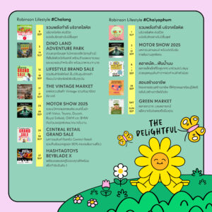 1 ก.ย. 68 – 30 ก.ย. 68 ร่วมฉลอง “11th ANNIVERSARY ROBINSON LIFESTYLE CHACHOENGSAO” กับเดือนแห่งความสุขที่โรบินสันไลฟ์สไตล์ ฉะเชิงเทรา พร้อมกิจกรรมสุดพิเศษ โปรโมชันจากร้านค้าแบรนด์ดัง และของรางวัลมากมายตลอดทั้งเดือน