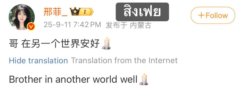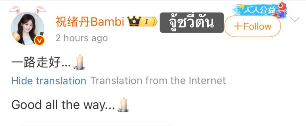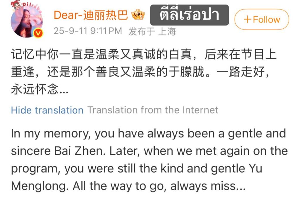 ขอบคุณข้อมูลจากเพจข่าวสารบันเทิงจีน