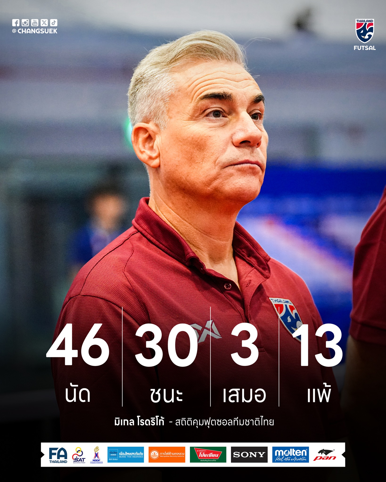 เปิดสถิติการคุมทัพ โต๊ะเล็กช้างศึก ของ “มิเกล โรดริโก้” กุนซือชาวสเปน ผู้มายกระดับฟุตซอลทีมชาติไทย