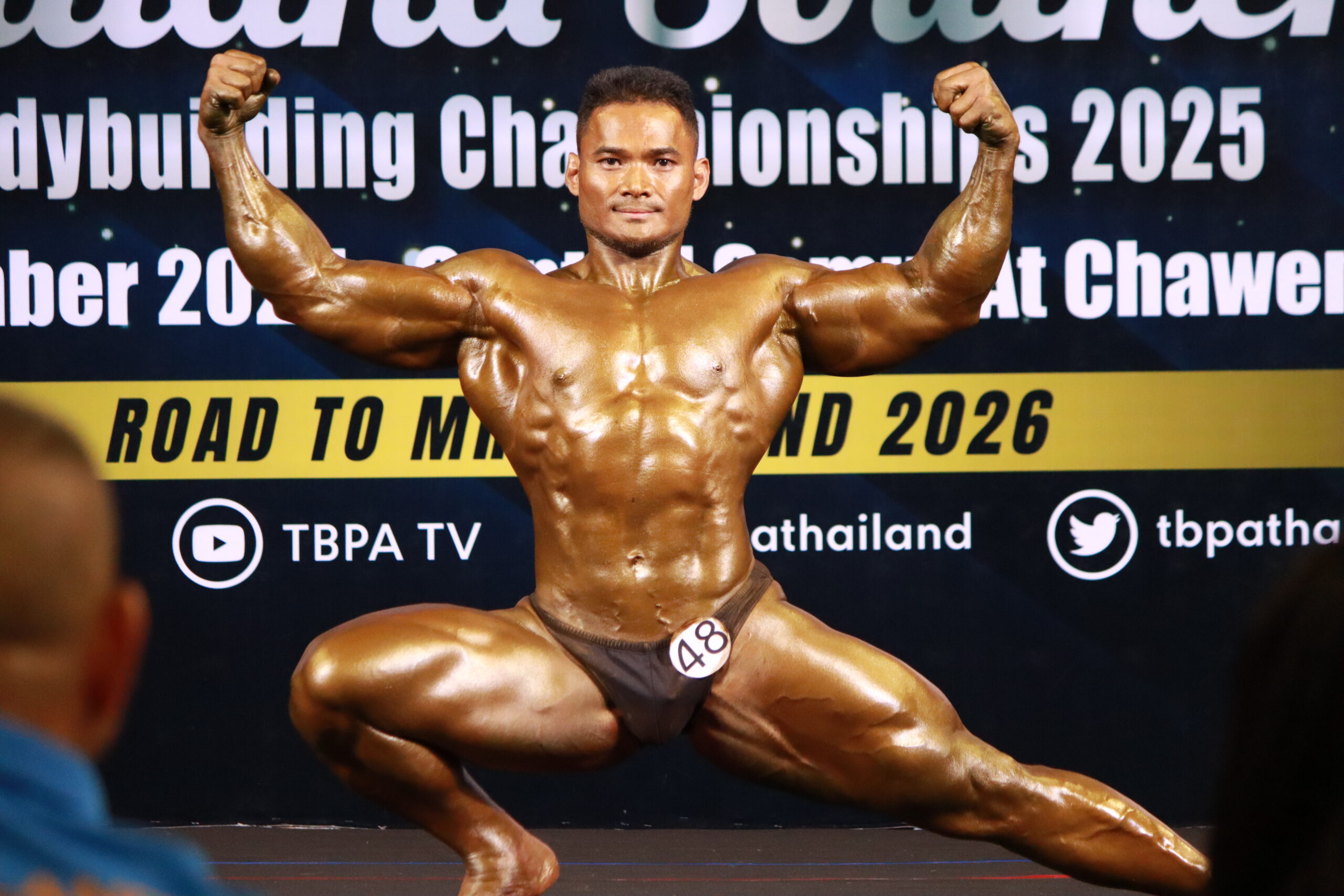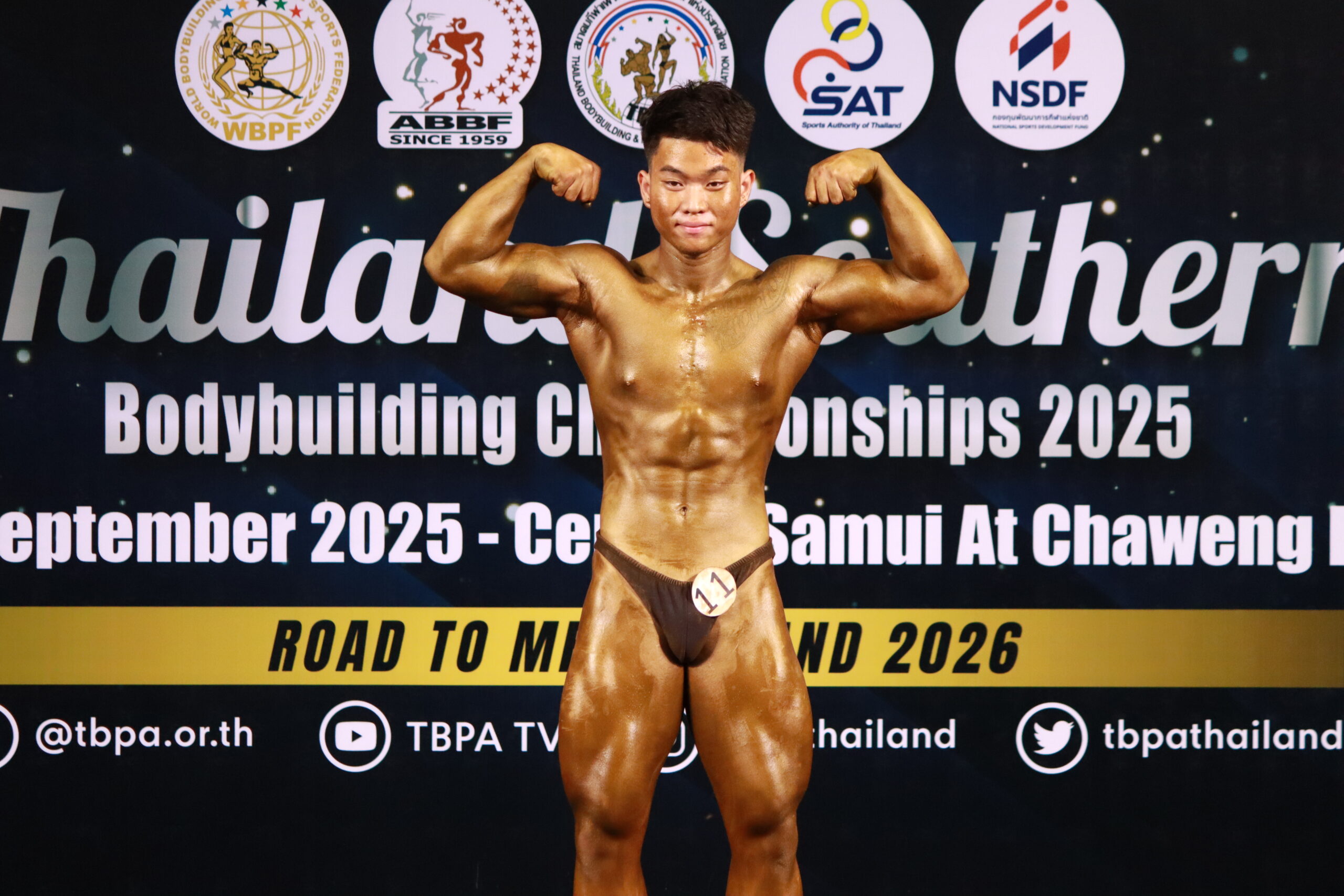 เกมไม่พลิก เกษม รัตนพร นักกีฬาเหรียญเงินเพาะกายอาเซียน ปี 2568 ที่ไทยเป็นเจ้าภาพ จาก ค่ายเพาะกายเชียงราย สนามกีฬาจ.เชียงราย คว้าแชมป์เพาะกาย รายการ “ปักษ์ใต้คลาสสิค” ตามความคาดหมาย