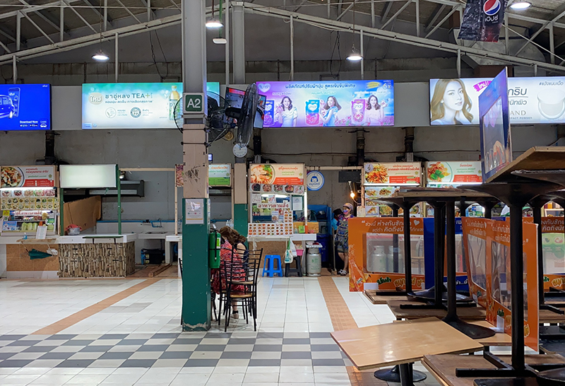 ทั้งนี้พบว่า ร้านอาหารส่วนใหญ่ได้มีการปรับรูปแบบการขายโดยหันมาใช้การจำหน่ายแบบจัดเป็นชุด เพื่อให้สะดวกแก่การรับประทาน โดยเฉพาะร้าน ปิ้งย่างและบุฟเฟต์ ชาบู ที่พบว่า บรรยากาศเงียบเหงาอย่างเห็นได้ชัด เพราะรูปแบบการรับประทานปกติจะเน้นการนั่งรับประทานภายในร้านมากกว่า ซึ่งก็ทำให้เป็นอุปสรรคเมื่อมีมาตรการดังกล่าวออกมา ส่วนบรรยากาศภายในฟู้ดคอร์ทหรือศูนย์อาหาร ของในห้างและนอกห้าง วันนี้ก็พบว่า มีการเก็บโต๊ะเก้าอี้ มากองรวมกัน เพื่อไม่ให้ประชาชนสามารถนั่งรับประทาน และซื้อกลับบ้านได้เท่านั้น บางร้านนำพลาสติกใสมากั้นระหว่างจุดจำหน่ายอาหารกับหน้าร้าน เพื่อลดความเสี่ยงการปนเปื้อนของเชื้อโรค อีกทั้งยังตั้งเจลแอลกอฮอล์ไว้สำหรับให้ลูกค้าด้วย นอกจากนี้ยังมีการนำเก้าอี้ มาวางไว้ โดยจัดแบบเว้นระยะห่างเพื่อให้ลูกค้าได้นั่งระหว่างรอรับอาหาร โดยจากการสอบถามผู้ค้า ระบุว่าถึงแม้จะเป็นช่วงเวลาเที่ยงแต่ก็มีลูกค้าเดินทางมาซื้ออาหารน้อยกว่าช่วงปกติมาก ทำให้ค่อนข้างได้รับผลกระทบด้านยอดขายพอสมควร